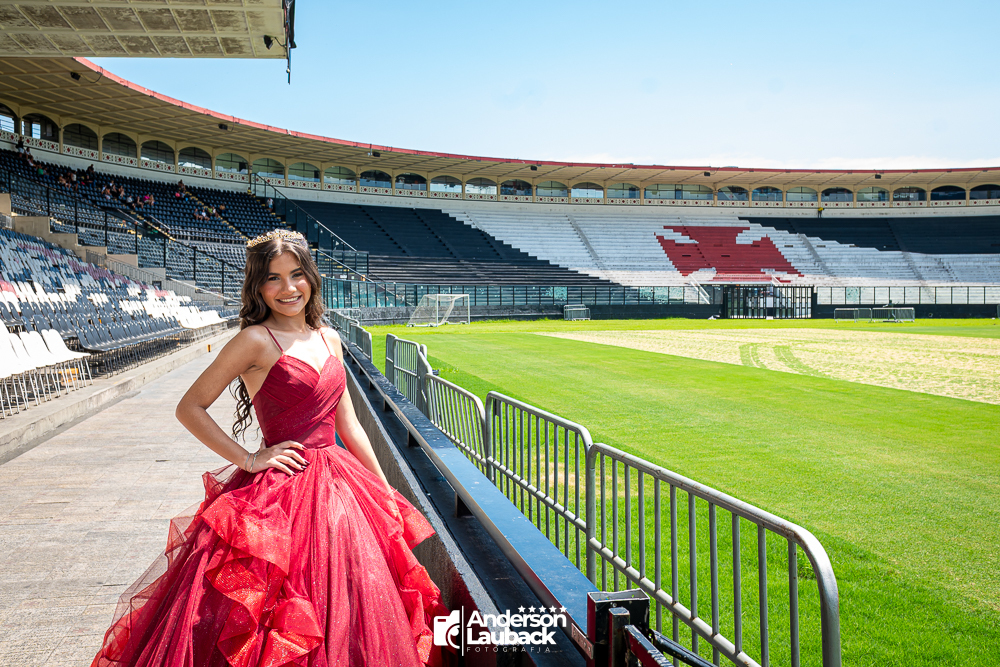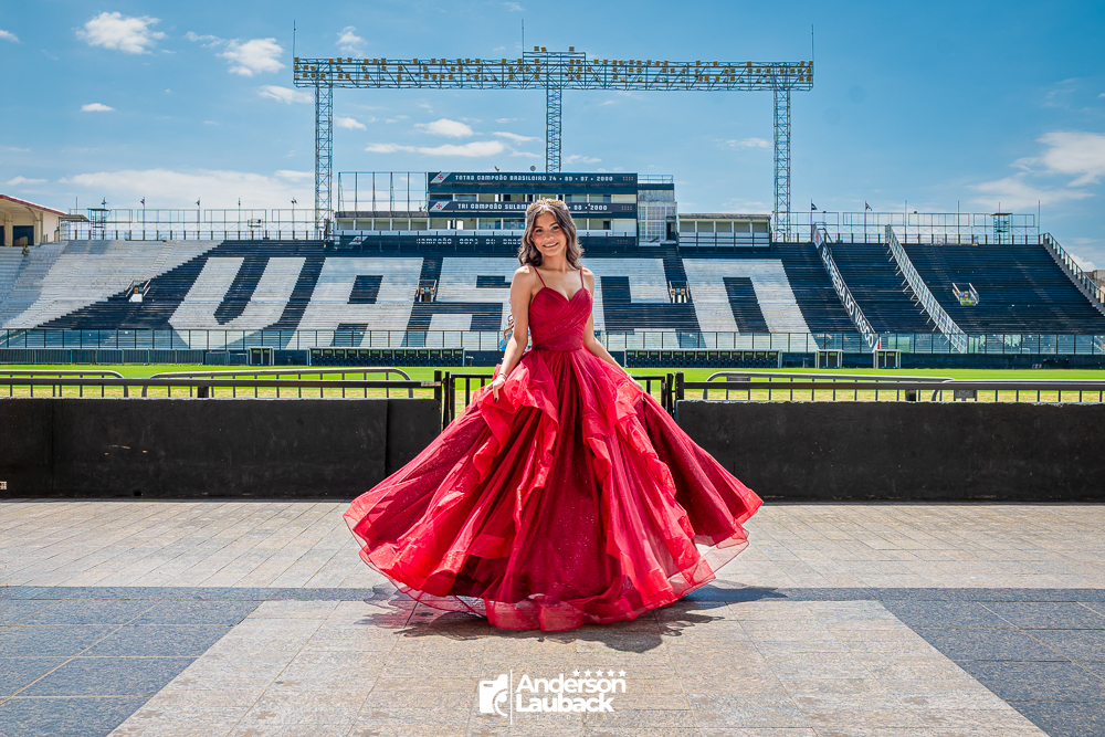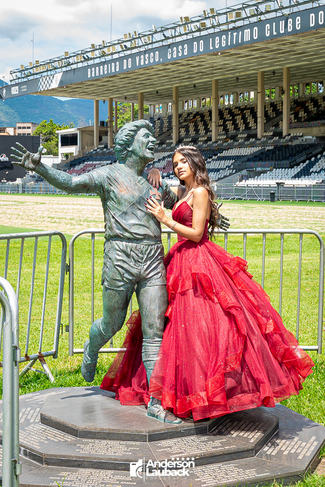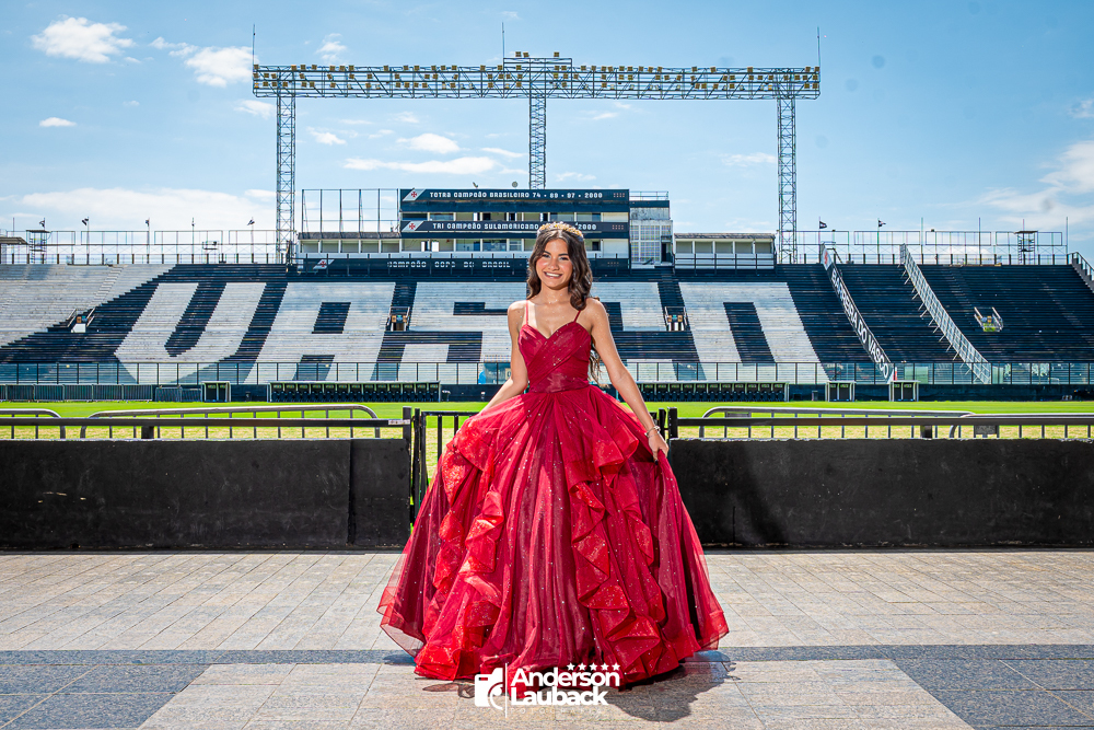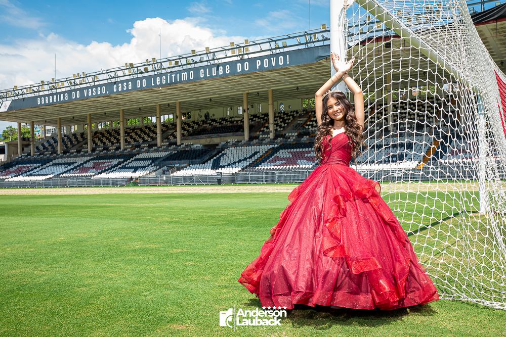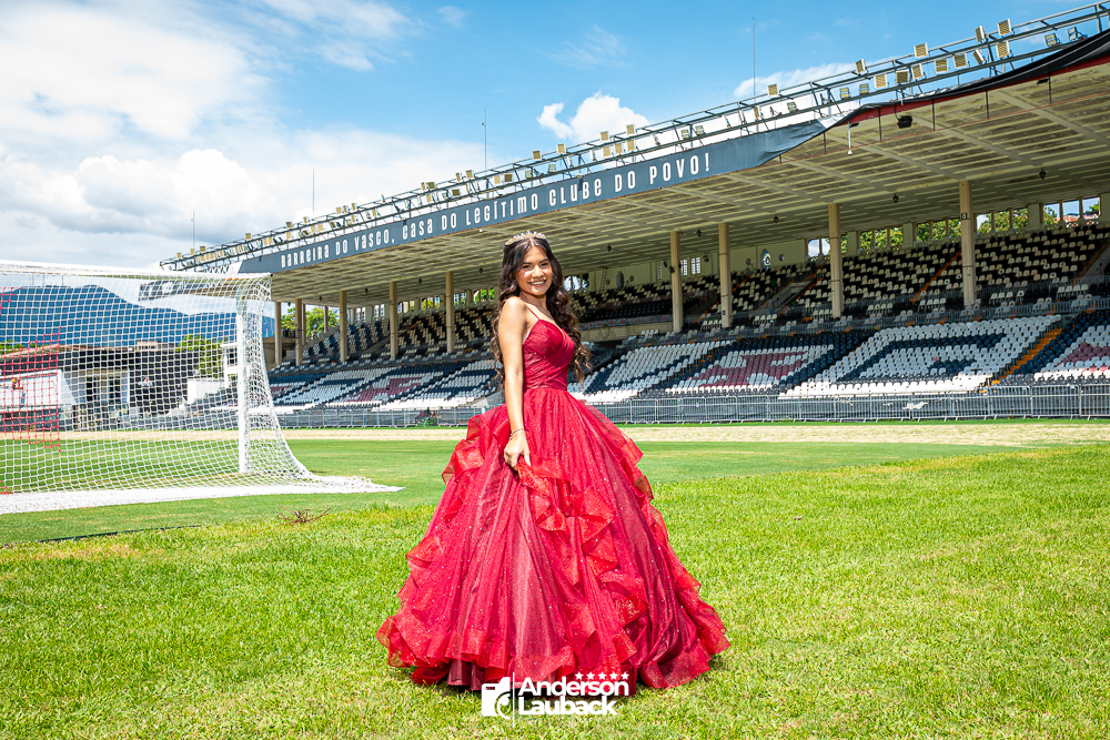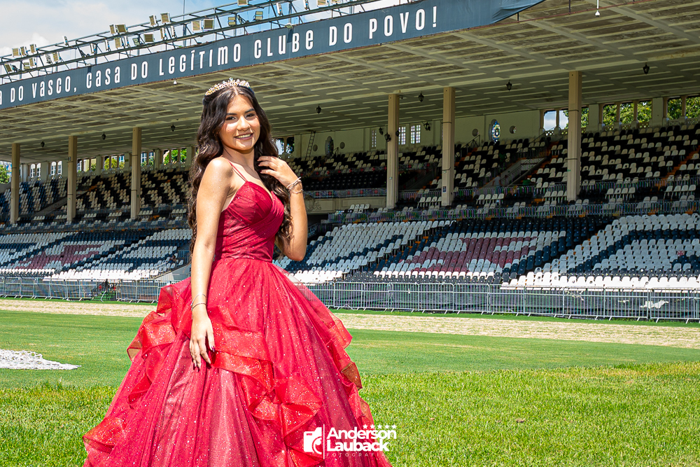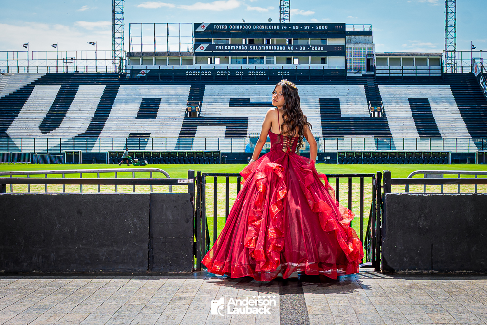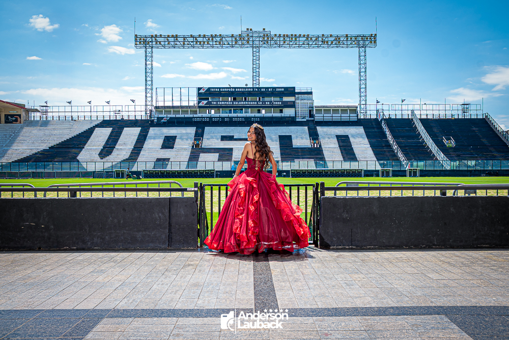 Ensaio externo da debutante Manuella foi realizado no Vasco da Gama. (Estádio São Januário)